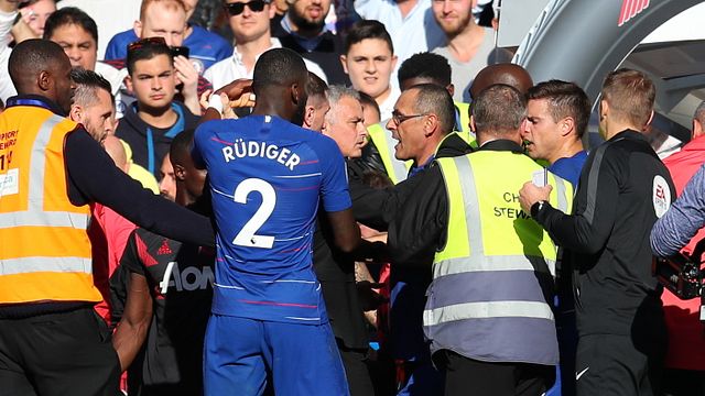 Domenica alle 18 Maurizio Sarri e José Mourinho si ritroveranno di nuovo faccia a faccia nel derby di Roma. Gettando uno sguardo al passato, si ricorda soltanto un precedente tra i due, ma che entrambi certamente non hanno dimenticato: 20 ottobre 2018, Chelsea-Manchester United a Stamford Bridge. Una partita bellissima, combattuta e decisa solo all'ultimo secondo, con un finale incandescente e una rissa sfiorata tra le due panchine.