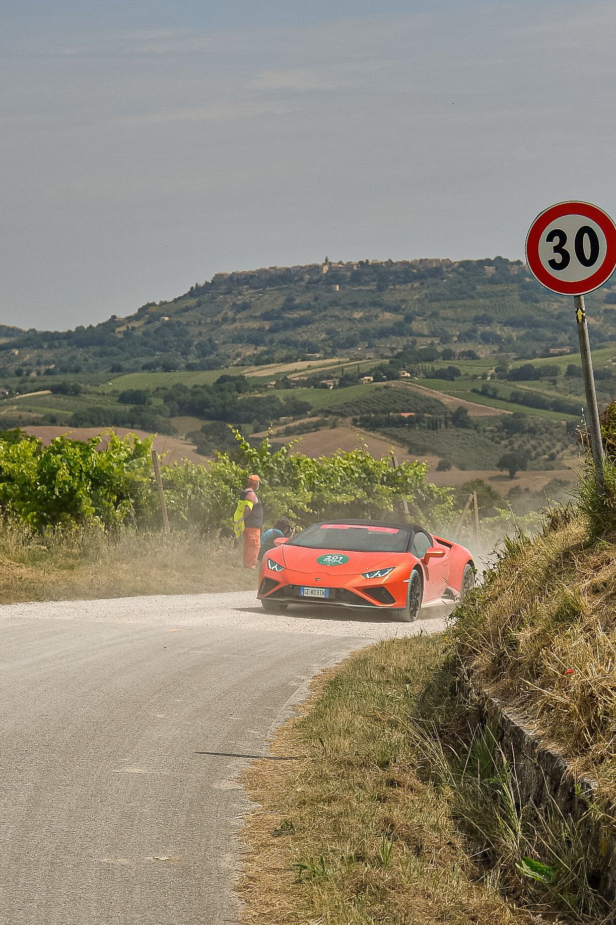 Una media di 15 ore al giorno in macchina e in tutte le situazioni possibili. Dalle strade normali a quelle sterrate delle prove speciali fino ai vicoli dei centri storici. Un colpo d'occhio pazzesco anche per la gente piena di entusiasmo. Arancio Piroo, il colore Ad Personam, che illuminava a ogni passaggio e rendeva la Huracán una delle macchine più fotografate della carovana. Questa la nostra prima 1000 Miglia, davvero speciale.