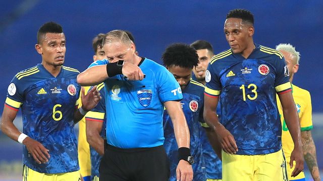 Gol, emozioni, ma soprattutto polemiche nella notte di Copa America. Il Brasile batte 2-1 in rimonta la Colombia grazie a un gol di Casemiro al 100', ma a far discutere è quanto successo in occasione del gol del pari dei verdeoro, che ha scatenato le furiose polemiche colombiane che hanno portato a 10' di recupero: Neymar colpisce il corpo dell’arbitro Pitana, che sembra in procinto di interrompere il gioco, ma l’azione prosegue e sfocia nel cross a centro area per Firmino, che di testa e fa 1-1.