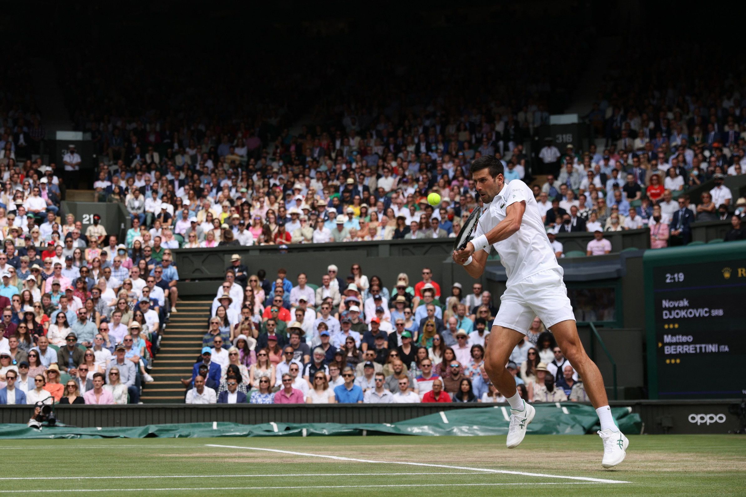 Matteo Berrettini si ferma a un passo dal regalare a se stesso e all'Italia la prima storica vittoria a Wimbledon. Il romano si aggiudica il primo set, poi subisce il ritorno di Novak Djokovic, che trionfa per la sesta volta nello Slam inglese al termine di una sfida lunga 3 ore e 24 minuti, che si chiude in quattro set con il punteggio di 6(4)-7, 6-4, 6-4, 6-3.