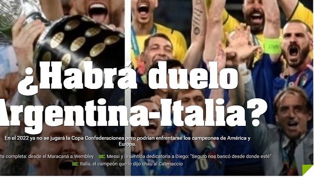 Dal Maracanà e da Wembley… al Diego Armando Maradona. Dall’Argentina arriva una proposta provocatoria, lanciata dal quotidiano Olè, che potrebbe anche essere accolta dalle due federazioni nazionali: un’amichevole tra i trionfatori della Copa America, l'Argentina appunto, e quelli di Euro 2020, l'Italia, in onore del Pibe de Oro scomparso il 25 novembre 2020, “la Supercoppa Maradona”.