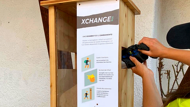 “XChange Box” è il nome di questo particolare contenitore, che è solo l’ultimo stadio di un processo che parte dall’inizio dell’escursione. Il punto di raccolta è stato realizzato in legno da un artigiano locale e presenta una finestra trasparente che permette di far vedere a tutti i rifiuti che vengono raccolti sul territorio.