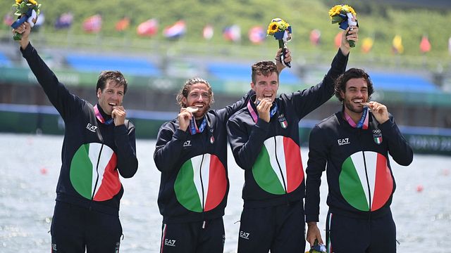 L'Italia dimostra, ancora una volta, di saper dare il meglio nelle difficoltà, e lo fa conquistando un preziosissimo bronzo nel 4 senza maschile: arriva dal canottaggio la tredicesima medaglia azzurra a Tokyo 2020. Il primo ostacolo arriva a pochi minuti dal via: Bruno Rosetti è costretto a saltare la finale dopo la positività al Covid, al suo posto Marco Di Costanzo. E anche nelle acque del Sea Forest Waterway, l'inizio non è dei migliori: al primo passaggio ai 500 metri, infatti, l'Italia è ultima, seppur non lontana dalla lotta per il podio. Nel frattempo, arriva l'impareggiabile allungo dell'Australia, che si prende la testa della gara senza più lasciarla, con Romania e Gran Bretagna alle spalle e il 4 senza azzurro a battagliare per la terza posizione.