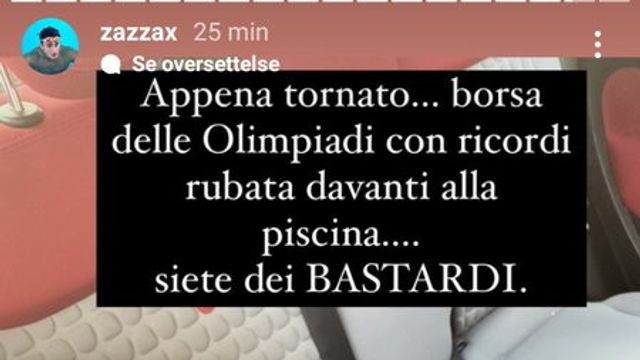 Dal sogno vissuto a Tokyo all'incubo del rientro a Firenze. Lorenzo Zazzeri, medaglia d'argento nella 4x100 stile libero di nuoto, è stato derubato di fronte alla piscina Bellariva dove era andato a festeggiare una volta rientrato dai Giochi. "Borsa delle Olimpiadi rubata - ha postato su Instagram con un appello al ladro -. Spero nel buon senso, tenete pure i beni materiali ma ridatemi i ricordi". Zazzeri aveva la medaglia d'argento al collo.