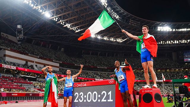 "Se siamo la nuova Giamaica? Ma quale Giamaica, siamo l'Italia e siamo la migliore di sempre. Siamo tutti e quattro superstar". Così il bicampione olimpico Marcell Jacobs dopo la strepitosa vittoria del quartetto azzurro nella staffetta 4x100 dei Giochi di Tokyo 2020: "Noi siamo quattro sotto una sola bandiera - ha aggiungto - la maglia azzurra ci dà una spinta incredibile". "La cosa più bella che è successa è che prima della gara ci siamo detti di vincere questa medaglia d'oro, ci abbiamo creduto fino in fondo. Questo oro vale di più di quello individuale perché condividerlo con questo gruppo è fantastico", ha aggiunto. "Tokyo mi sta regalando tanto, una doppia medaglia d'oro chi se l'aspettava. Abbiamo fatto un grande lavoro, è stato un percorso lungo ma ora siamo sul tetto del Mondo: che dire, grazie anche a tutti gli italiani che ci hanno sostenuto", ha spiegato. "È qualcosa di incredibile, un record per l'Italia. Quando tornerò in camera inizierò a piangere, perché è incredibile quanto sta succedendo.", ha concluso Jacobs.