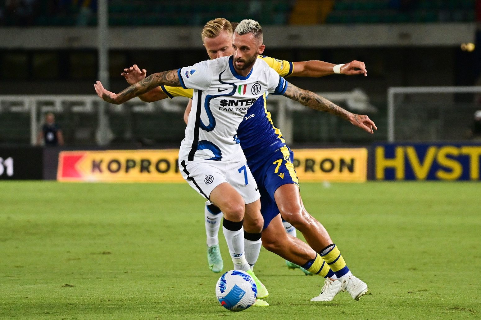 Nella serata del Bentegodi, Di Francesco sceglie di rinunciare all'attaccante di ruolo schierando Cancellieri, Barak e Zaccagni in avanti per provare a ingabbiare Brozovic, mentre Inzaghi rilancia subito il rientrante Lautaro al fianco di Dzeko. I nerazzurri prendono subito le redini del gioco, ma faticano a spezzare la pressione dell'Hellas e a dare fluidità alla manovra nella metà campo avversaria. La prima chance capita sul destro di Lautaro dopo un rimpallo fortuito, ma Montipò è attentissimo sul suo palo. Passano pochi minuti e il pasticcio lo combina invece Handanovic, dall'altra parte: il passaggio verso Brozovic è a dir poco rivedibile, Ilic ne approfitta per strappare palla al croato e battere il portiere nerazzurro con un delizioso tocco sotto. Gli uomini di Inzaghi provano a non scomporsi e a riprendere subito in mano il pallino del gioco, ma l'Hellas non abbassa la testa e non rinuncia al consueto pressing a tutto campo, tagliando i rifornimenti in area per i due attaccanti nerazzurri che toccano tanti palloni in fase di costruzione, ma pochissimi dove conta davvero. Il primo tempo si chiude sull'1-0 con qualche momento di nervosismo ma nessun'altra emozione.