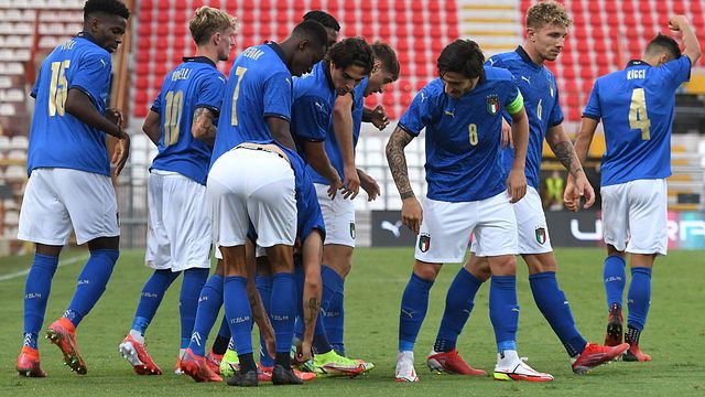 Un'Italia non brillante ottiene il minimo risultato con il massimo sforzo: al Menti di Vicenza, infatti, arriva un risicato e in parte sofferto 1-0 contro il Montenegro, alla quarta partita e al secondo ko consecutivo nel gruppo F di qualificazione agli Europei Under 21. Gli azzurrini schiacciano subito gli ospiti, andando vicini al gol con Colombo sugli sviluppi di un calcio d'angolo. A sfiorare l'1-0 è poi Cancellieri, che con un destro a giro in area testa i riflessi di Ivezic al 28'. Tredici minuti dopo, Rovella tenta il sinistro a giro ma va lontanissimo dalla porta montenegrina.