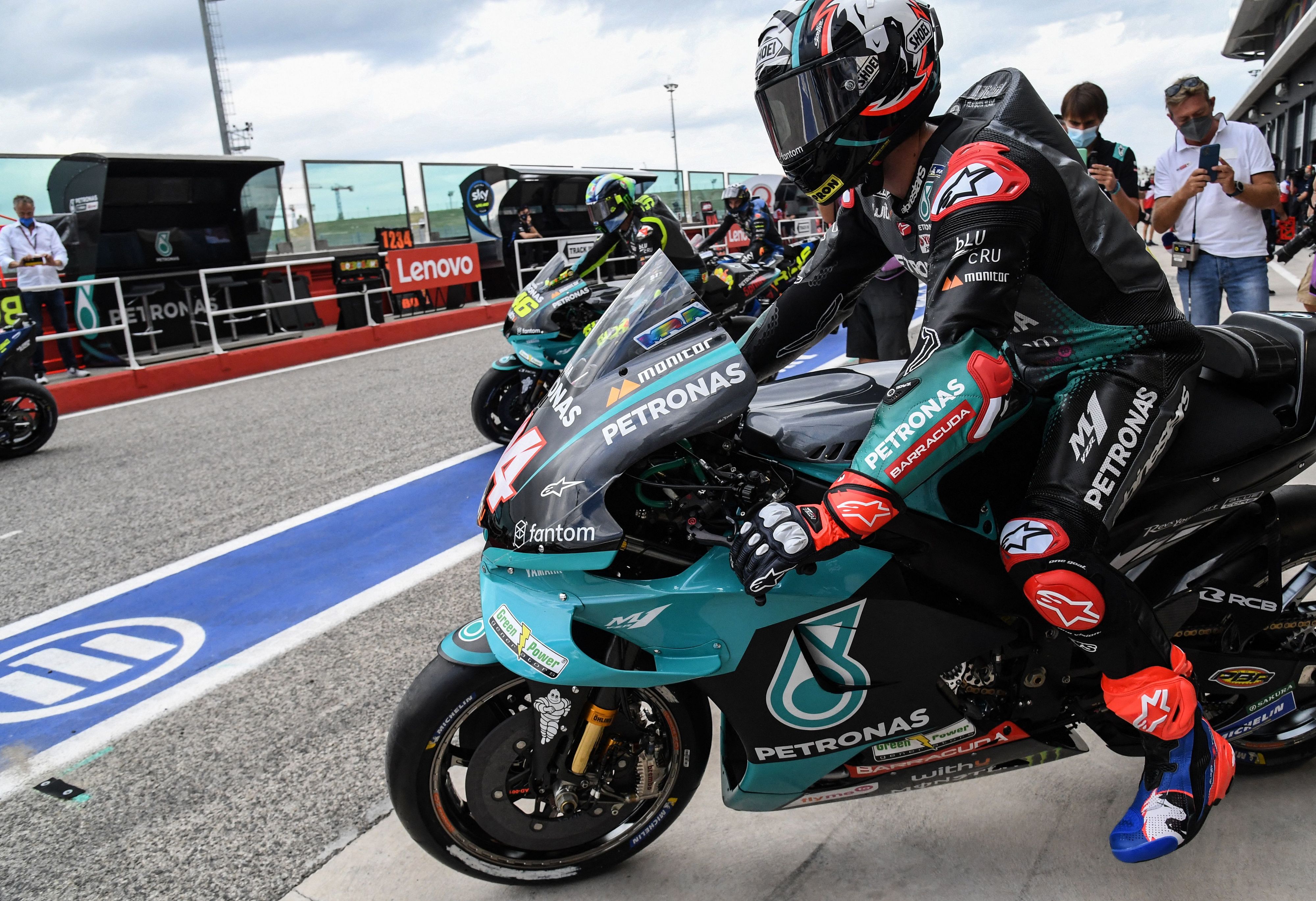 Ducati inarrivabili per la concorrenza nel bagnatissimo turno di prove libere che chiude per la MotoGP la prima giornata del weekend del Marco Simoncelli World Circuit. Il miglior tempo lo sigla Zarco che proprio in extremis toglie a Francesco Bagnaia il tempo che il piemontese aveva a sua volta strappato al compagno di squadra Jack Miller. Una Desmosedici targata Pramac quindi davanti alle due "Rosse" del team ufficiale ma larghi sorrisi nei box del team factory, visto che il leader del Mondiale Fabio Quartararo è stato fin qui protagonista (si fa per dire) di un avvio di fine settimana piuttosto incolore. Il Diablo (dalle polveri bagnate) ha chiuso le FP2 in 18esima posizione ( a due secondi e 108 millesimi dalla vetta), appena dietro al suo ex compagno di squadra Maverick Vinales, che in mattinata era stato il più veloce con l'Aprilia sull'asfalto asciutto. Tutto questo al termine di un turno avaro di soddisfazioni per la Casa di Iwata: tredicesimo tempo per il neoacquisto Franco Morbidelli (ma ad un secondo e 747 da Zarco), 16esimo e 21esimo rispettivamente per Valentino Rossi (+2.033) e per il rientrante Andrea Dovizioso (+2.433) in sella alle M1 "malesi" del team Petronas.