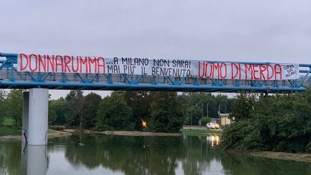 Sarà presumibilmente un mercoledì sera caldo per Gigio Donnarumma. Al suo ritorno a San Siro dopo l'addio al Milan, il portiere azzurro, che giocherà con la maglia dell'Italia contro la Spagna in Nations League, potrebbe riceve un'accoglienza a dir poco ostile. Lo conferma lo striscione apparso su un ponte vicino all'albergo del ritiro della Nazionale a Milano. "Donnarumma a Milano non sarai mai più il benvenuto. Uomo di m...", hanno scritto i tifosi della Curva Sud del Milan.