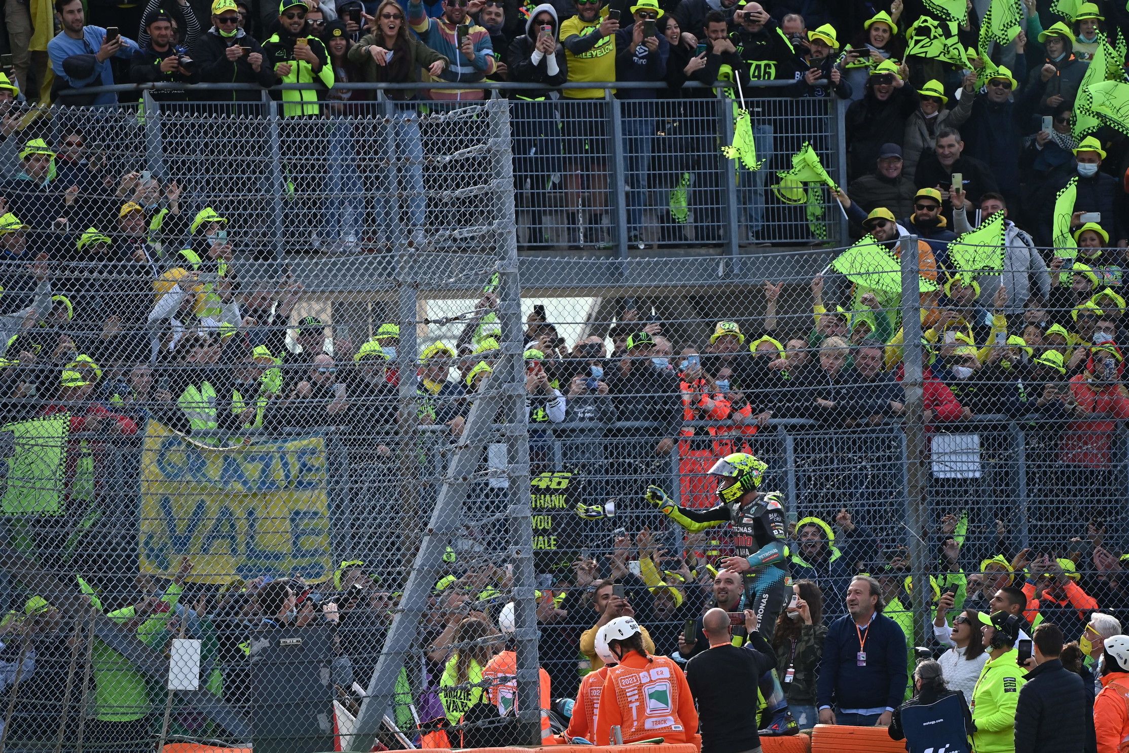 Un casco per e dei tifosi. Valentino Rossi dopo aver concluso il suo ultimo GP in terra italiana al decimo posto si è fermato sotto la tribuna dei suoi fan e, a sorpresa, ha lanciato loro il casco utilizzato in gara. Un vero e proprio cimelio per un fortunato supporter che l'ha preso al volo. Una rarità visto che il numero 46 non è solito regalare i caschi da lui indossati e custoditi gelosamente a Tavullia nel museo.