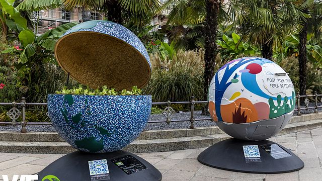 Le installazioni sono state realizzate con plastica riciclata e sono state elaborate artisticamente secondo diversi temi come inquinamento, risparmio energetico, riciclo, smaltimento rifiuti, aumento della temperatura dell’atmosfera e dei mari, da giovani artisti dell’Accademia delle Belle Arti di Brera, e da artisti e designer provenienti da ogni parte del pianeta che hanno interpretato tematiche e valori della sostenibilità utilizzando come tela il grande supporto sferico dei globi.
