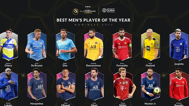 Azpilicueta, Benzema, Chiesa, De Bruyne, Dias, Donnarumma, Fernandes, Haaland, Jorginho, Kane, Kanté, Kimmich, Lewandowski, Lukaku, Marquinhos, Mbappé, Messi, Müller, Neymar, Ronaldo, Salah, Verratti