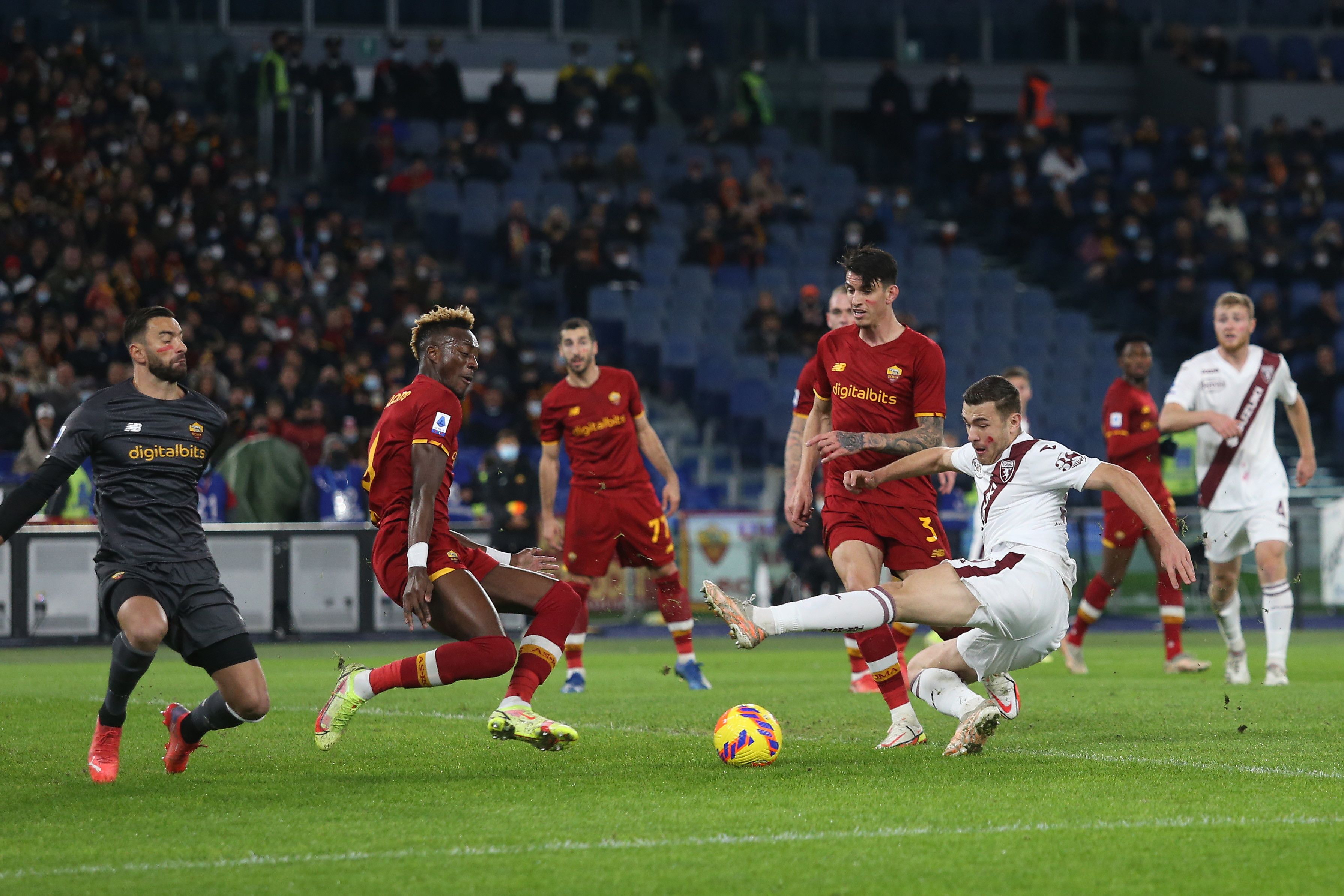 Due tiri in porta per la Roma, recitano le statistiche di fine partita con circa il 35% di possesso palla. E' bastato per conquistare i tre punti grazie a una ripartenza veloce e precisa orchestrata da Ibanez, rifinita da Mkhitaryan e capitalizzata da Abraham dopo un velo intelligente di Zaniolo. Proprio il trequartista italiano è stato tra i più attivi in campo in un ruolo non suo, cercando di coprire palla al piede buona parte di campo nei contropiedi e talvolta eccedendo in egoismo. Prima del gol vittoria però della Roma era stato il Torino vicino al gol in più di una occasione con Praet e Pobega prima e Buongiorno poi. A pochi minuti dall'intervallo poi i giallorossi avrebbero avuto la possibilità di raddoppiare per un fallo in area di Buongiorno su El Shaarawy, ma i cinque minuti passati sul dischetto ancora da Abraham sono stati cancellati da un fuorigioco segnalato con grossa difficoltà dal Var.