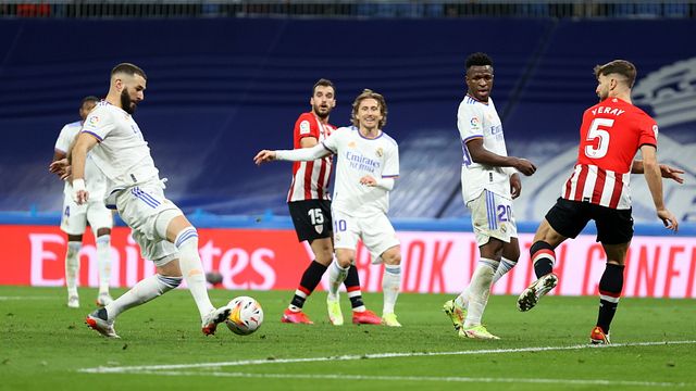 Prove di fuga in cima alla classifica del campionato spagnolo per il Real Madrid, che supera 1-0 l’Athletic Bilbao in casa e si porta a +7 punti, ma con una partita in più, sull’Atletico Madrid secondo. Nel recupero della nona giornata della Liga, quando a ottobre la partita fu rinviata per l’assenza dei giocatori sudamericani impegnati nelle qualificazioni ai Mondiali 2022 con le proprie nazionali, è la rete di Benzema a regalare tre punti fondamentali alla squadra di Ancelotti: il vantaggio arriva al 40’ su assist di un ispirato Modric. Nella ripresa i baschi provano a reagire ma i Blancos reggono l’urto fino al fischio finale e anzi sfiorano il raddoppio su ripartenza. Con questa sconfitta, l’Athletic non riesce invece ad avvicinare la zona Europa.
