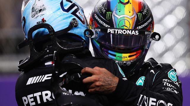 Un giro con il cuore in gola, quello di Verstappen: iniziato sforando le protezioni a bordo pista, proseguito accumulando un vantaggio di oltre tre decimi ma chiuso (anzi no...) colpendo con il lato destro della sua RB16B il muretto all'esterno di curva 27, l'ultima della Corniche di Jeddah prima della linea d'arrivo e di una pole position che finisce invece per restare - ma con pieno merito - nell'abitacolo della W12 numero 44: quella di Lewis Hamilton. C'è ora apprensione - nel campo Red Bull - per le sorti della trasmissione della monoposto dell'olandese. Se il cambio dovesse essere sostituito, Max arretrerebbe su di uno schieramento di partenza nel quale il leader della classifica generale vede già nero: il colore delle due Mercedes che occupano per intero la prima fila. Valtteri Bottas ha infatti portato a termine una missione che ormai... non gli appartiene più, mettendo a segno il secondo tempo a 111 soli millesimi da Hamilton. Graziato, il finlandese, dai commissari di gara dopo aver ostacolato il connazionale Kimi Raikkonen (dodicesimo alla fine): tra l'altro al volante dell'Alfa Romeo Sauber che Valtteri porterà in pista nel Mondiale del prossimo anno!