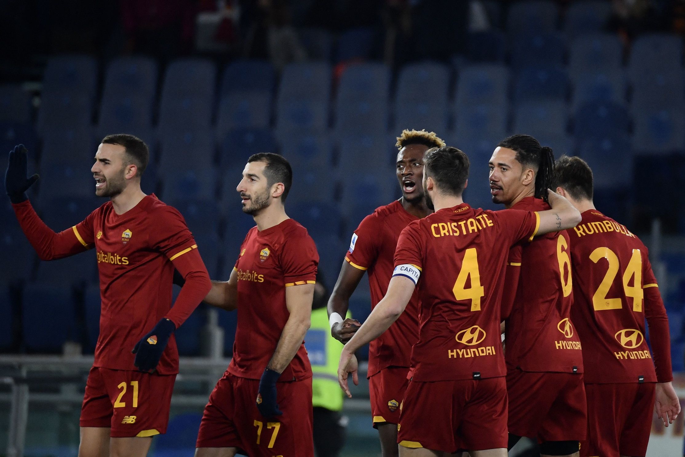 ROMA (3-5-2): Rui Patricio 6,5, Ibanez 6,5, Smalling 7 (19’ st Diawara 6), Kumbulla 5,5, Karsdorp 5,5, Veretout 6 (48’ st Bove sv), Cristante 6, Mkhitaryan 6,5, Vina 6,5, Mayoral 5,5 (19’ st Afena-Gyan 5,5), Abraham 7. A disp.: Fuzato, Boer, Calafiori, Darboe, Ndiaye, Shomurodov, Villar, Zalwski. All. Mourinho 6