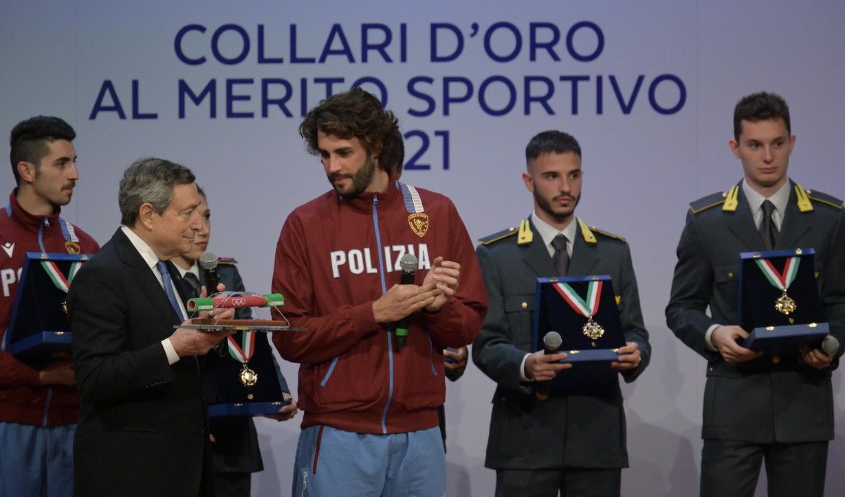 Un anno da celebrare insieme alle stelle che lo hanno illuminato. La tradizionale cerimonia dei Collari d'Oro, la massima onorificenza dello sport italiano, è stata l'occasione per salutare il magico 2021 dello sport italiano e le campionesse e i fuoriclasse che lo hanno nobilitato, facendo sventolare il tricolore nel mondo e scrivendo pagine di storia all'insegna dei record. L'evento si è tenuto nella Sala Sinopoli dell'Auditorium Parco della Musica 'Ennio Morricone', con la partecipazione del presidente del Consiglio, Mario Draghi, che ha premiato gli insigniti. Sul palco, insieme al premier, il presidente del Coni, Giovanni Malagò, il sottosegretario con Delega allo Sport, Valentina Vezzali, e il presidente del Comitato Italiano Paralimpico, Luca Pancalli.