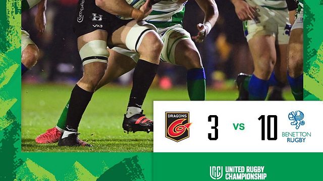 Un 13-13 che non può non lasciare rimpianti quello che la Benetton Treviso raccoglie a Newport in casa dei Dragons: a fine primo tempo, infatti, i veneti sono in vantaggio per 10-3 grazie alla meta trovata da Els poco dopo la metà di frazione e le due realizzazioni a palla ferma di Albornoz, mentre i gallesi si sbloccano solo nel finale con il calcio di Davies che cancella lo 0 alla voce punti dei padroni di casa. Nel secondo tempo, però, Moriarty approfitta degli errori della difesa ospite e trova subito la meta, con Davies che completa con la trasformazione: 10-10. Il resto lo fanno le due punizioni dei due specialisti: Davies per i Dragons e Albornoz, che proprio allo scadere, dopo l'espulsione di Dee, fallisce però il calcio della possibile vittoria. Arriva così un pareggio che lascia l'amaro in bocca alla Benetton Treviso, ora sesta in classifica a quota 23 punti contro gli 11 dei gallesi.