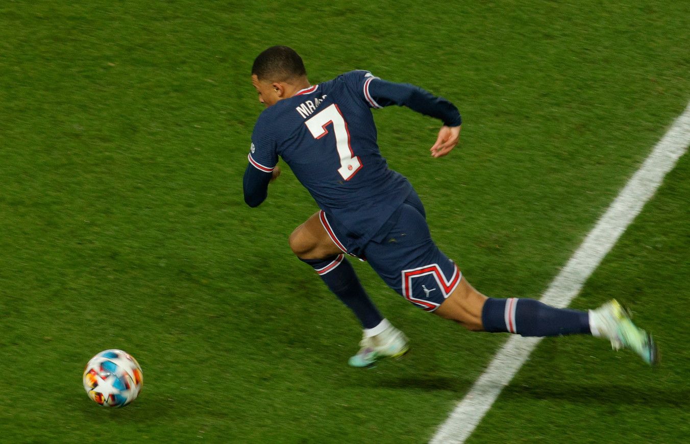 Sono i parigini a fare la gara, grazie anche a un grande pressing, e per quasi mezzora gli spagnoli quasi non superano la metà campo, chiudendo tutti gli spazi centralmente e lasciando il pallino del gioco nelle mani degli avversari. L'uomo più atteso è Mbappé che al 5' dà un saggio delle sue abilità, andando via in slalom e mettendo a centro area dove arriva Di Maria che calcia alto di prima intenzione. Il PSG affonda soprattutto a sinistra con Nuno Mendes che non paga dazio alla giovane età ed è autore di alcuni spunti brillanti. Le emozioni, però, si contano con il contagocce e l'azione più pericolosa della prima frazione è al 18', quando Messi lancia nello spazio Mbappé che supera Carvajal e Courtois si salva con il piede. I merengues si affacciano timidamente nella metà campo francese solo dopo la mezzora, ma Vinicius non riesce mai a partire palla al piede e Benzema è completamente avulso dal gioco. Per il primo tiro in porta dei ragazzi di Ancelotti bisogna aspettare proprio il 45', quando Casemiro di testa non trova la porta, emblema di un primo tempo davvero sottotono.