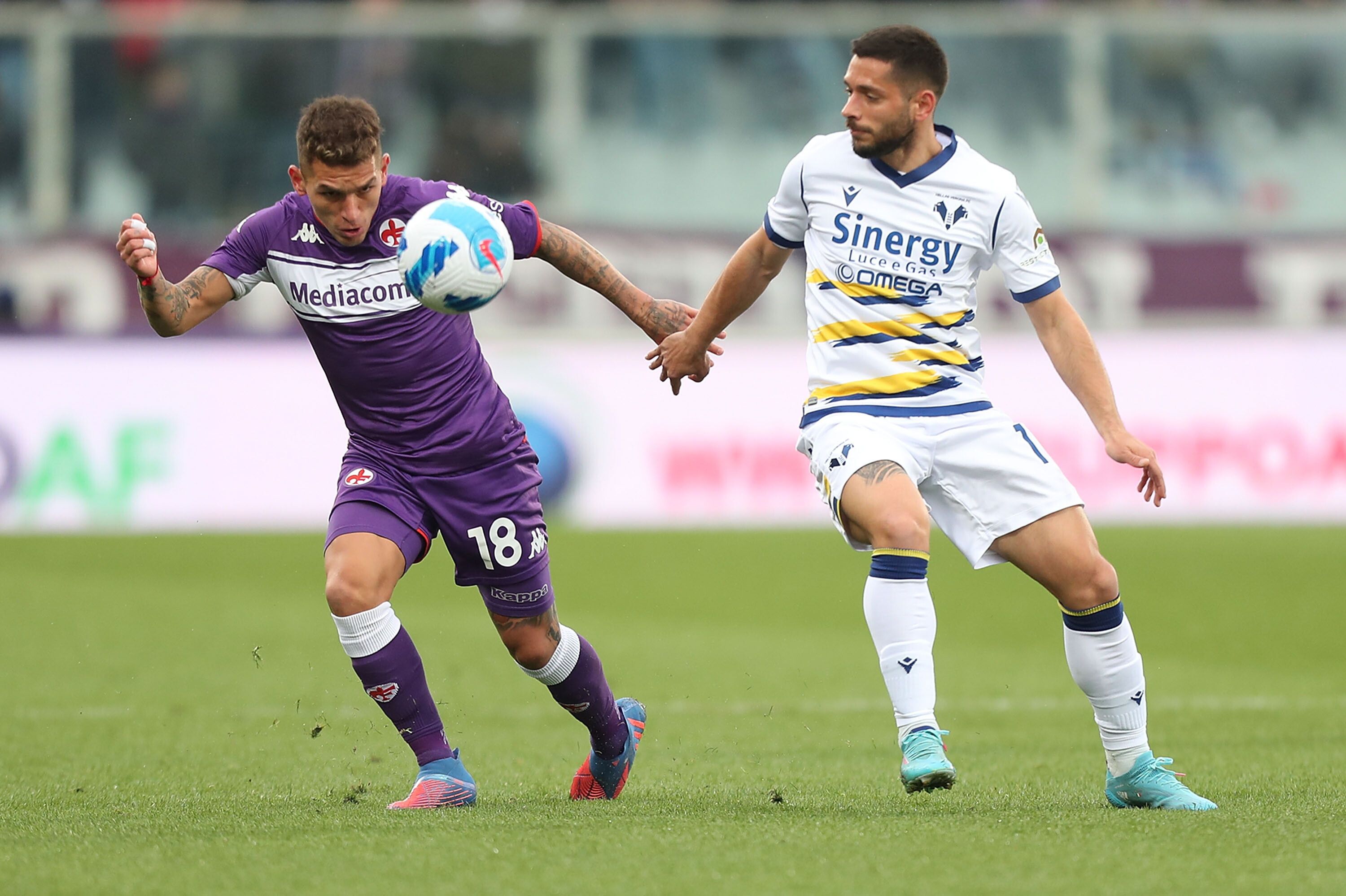 Ancora sotto shock per la sconfitta amara rimediata in Coppa Italia, la Fiorentina torna in campo al "Franchi" ricordando il suo capitano Davide Astori a quattro anni dalla tragica scomparsa (era il 4 marzo 2018). E l'inizio non è dei migliori, con il Verona che prende subito le redini del gioco e fa capire di non essere arrivato a Firenze per aspettare e ripartire. Un rimpallo fortunoso, però, regala il vantaggio ai viola, con Piatek che è lesto ad approfittarne e girare il pallone in rete da due passi. L'Hellas non si scompone, ricomincia da dove aveva lasciato e viene subito ripagata. Un'entrata scomposta di Milenkovic su Lasagna permette a Caprari di presentarsi sul dischetto. Il numero 10 di Tudor (il tecnico è alla 50.a presenza da allenatore in A) non si lascia influenzare dalla fama di pararigori di Terraciano e lo beffa con un tiro centrale rasoterra. Gli ospiti continuano a macinare e soprattutto dalla fascia sinistra costruiscono le occasioni più pericolose. Come poco prima della mezz'ora, quando sul traversone di Caprari, prima Faraoni e poi Simeone arrivano in leggero ritardo per dare la zampata vincente. Il Verona avrebbe un'altra occasione per sorpasso prima dell'intervallo, ma Lasagna, lanciato a campo aperto da un rimpallo, si fa deviare il tiro da Terraciano. E' l'ultimo sussulto di un primo tempo che ai punti ha visto i gialloblù meritare di più.