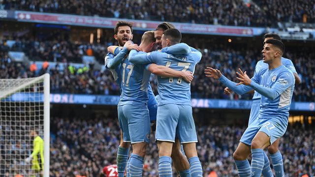 Troppo City per lo United. Nella 28ª giornata di Premier League, il derby di Manchester incorona gli uomini di Guardiola, vittoriosi 4-1 in un match dominato a larghi tratti nel gioco. Le doppiette di De Bruyne e Mahrez lanciano la capolista a +6 sul Liverpool, mentre i Red Devils (che avevano pareggiato con Sancho) si allontanano dalla Champions, anche per il successo 3-2 dell’Arsenal sul campo del Watford firmato Odegaard, Saka e Martinelli.