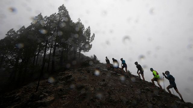 Le condizioni meteo sono “appalling”, tremende. Siamo partiti da Maspalomas con sole pieno e temperatura ideale, raggiungiamo l’ombelico dell’isola in un panorama (inesistente!) di nebbia fitta, vento forte, pioggia e basse temperature che i bollettini meteo (e gli avvisi degli organizzatori) avevano annunciato ma che noi - fino all’ultimo - abbiamo sperato non si addensassero (nel vero senso della parola) sul cielo del Campamento de Garanon dal quale prende il via la nostra prova. Rischiando di accumulare ritardo sul suo programma di assistenza agli atleti Brooks Trail Runners, Tobias decide di non abbandonarci ancora al nostro destino e ci permette di cambiarci in macchina, con il riscaldamento al massimo e fino ad una trentina di minuti prima dello start. Sì ma noi chi? Ah, certo: all’invito di Brooks di non limitare il viaggio all’impegno giornalistico ed ampliarlo invece a quello agonistico (e chi se la lascia scappare, un’occasione così) ha aderito anche Nazzareno Salvati, Guida Alpina di Vicenza ma residente a St. Christophe, comune della cintura di Aosta, al quale faccio (anche qui) i miei complimenti per l’ottimo 61esimo posto finale su quasi ottocento concorrenti. Salutiamo quindi il nostro accompagnatore e - dandogli appuntamento all’arrivo e comunque a metà pomeriggio (abbondante, nel mio caso) - ci avviamo ormai ognuno per sé in discesa nella pineta e dentro il fango già abbondante che prelude alla radura che ospita il via della prova.