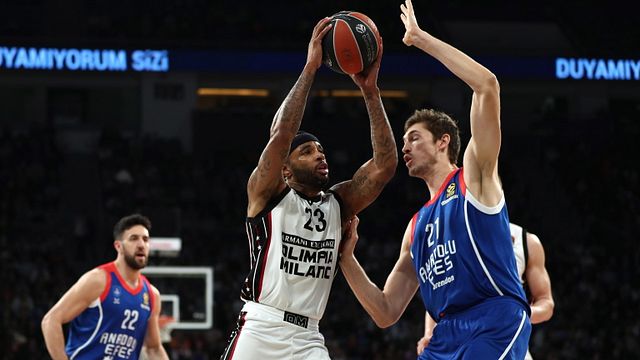 Impresa dell'Olimpia in Eurolega: nella trentaduesima giornata, Milano batte in rimonta i campioni in carica dell'Anadolu Efes e consolida il terzo posto in classifica. In Turchia finisce 83-77, con i padroni di casa sul +15 (51-36) all'intervallo lungo. La formazione di Messina, però, recupera lo svantaggio e vince grazie a cinque giocatori in doppia cifra: Datome (14 punti), Hall (13), Shields e Rodriguez (12) e Melli (10).