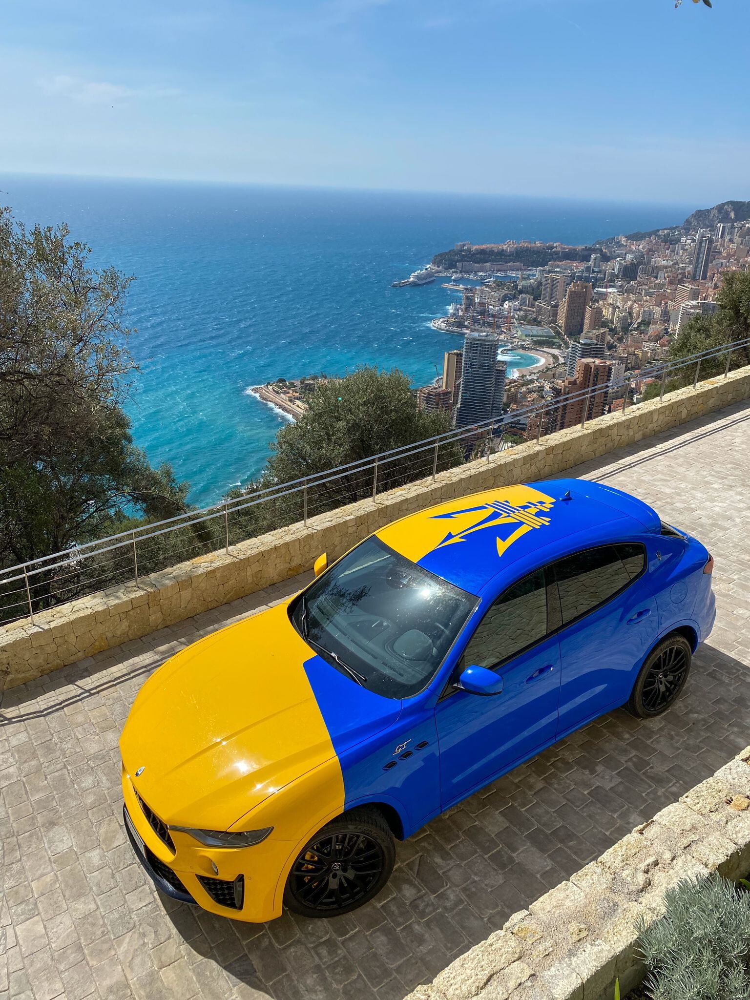 Esteticamente impeccabile con una linea rinnovata dove sono i dettagli a fare la differenza. Si parte dalla scritta GT con le prese d'aria laterali, che incarna lo spirito Maserati, per passare ai quattro scarichi posteriori. Silhouette da 10 e lode, un SUV slanciato e ben piazzato a terra. Muso lungo e importante, ma proporzioni perfettamente rispettate che all'interno regalano comodità a tutti i viaggiatori. La colorazione? Gialla e blu per rendere omaggio alla città di Modena e un tridente bicolore gigantesco sul tetto, per non passare inosservati. Un colpo d'occhio di tutto rispetto, a maggior ragione con il paesaggio di Montecarlo.