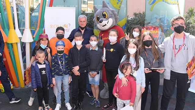 Mourinho ha portato loro quaderni e colori. L'evento, al quale ha preso parte anche Francesco Pastorella, Sustainability and Community Relations Department Director del Club, ha visto protagonista anche Romolo, la mascotte del club, che insieme all'allenatore portoghese ha regalato diversi gadget targati As Roma ai bambini presenti nella ludoteca dell'ospedale.