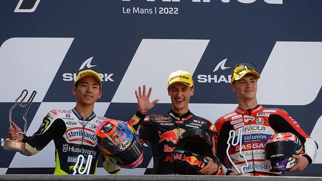 Jaume Masia mette il suo sigillo sul Gran Premio di Francia di Le Mans al termine di una gara lungamente condotta al comando ma poi vinta all'ultima curva con il controsorpasso su Ayumu Sasaki che lo aveva superato pochi secondi prima. Sul terzo gradino del podio Izan Guevara che precede Dennis Foggia. Ultimo giro da incubo per il pilota italiano che era scattato dalla pole position e che aveva iniziato in testa appunto il giro conclusivo. Foggia riduce però a diciassette punti il ritardo dal capoclassifica Sergio Garcia, oggi settimo al traguardo.