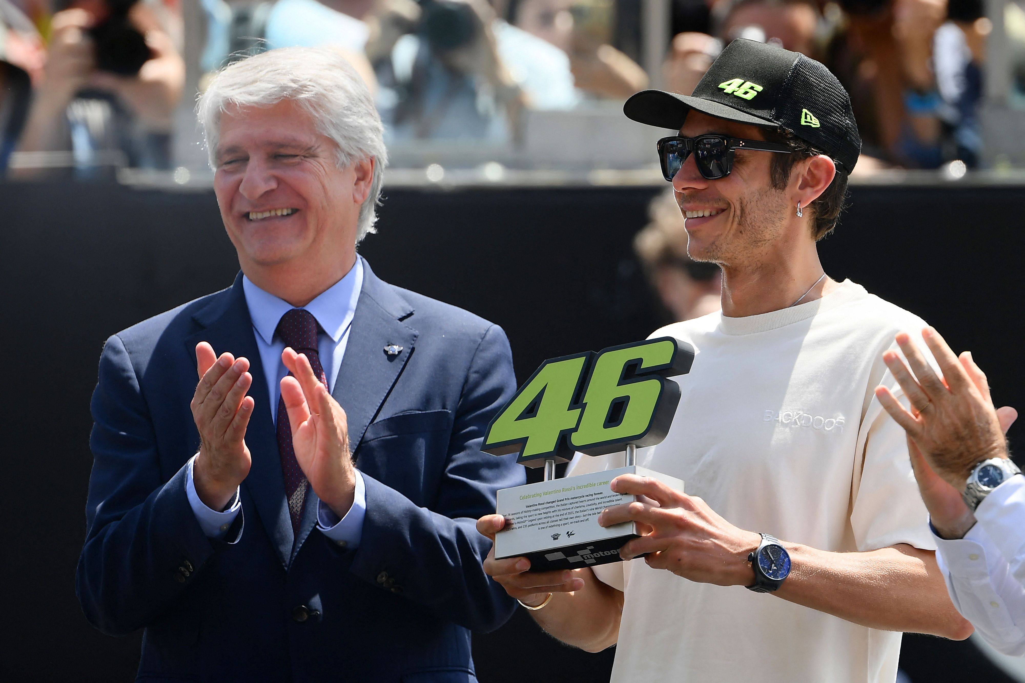 Sono passati appena sei mesi dal ritiro dalla MotoGP di Valentino Rossi, ma da Dorna arriva uno dei più grandi riconoscimenti per il "Dottore" che ha fatto la storia del Motorsport. Al Mugello, davanti al suo pubblico, il nove volte iridato ha ricevuto il suo 46 per sempre, numero ritirato ufficialmente dalla MotoGP per celebrare l'icona sportiva, e non solo, che il pilota di Tavullia è stato per il settore. Tanta emozione e applausi alla consegna del numero ricevuto da Ezpeleta.
