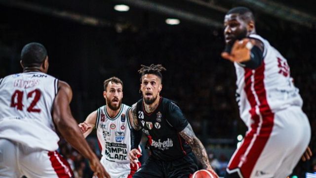 I padroni di casa dimezzano le distanze, all’inizio dell’ultimo parziale, in meno di 3’ con Teodosic (47-52); la bomba dall’angolo di Datome vale il 51-59. È però tutt’altro che finita: Bologna torna a -2 (57-59) e, con Hackett, avrebbe anche la possibilità di pareggiare i conti, ma il numero 23 sbaglia entrambe le volte dalla lunetta. Bentil e Datome danno ossigeno all’Armani Exchange; Teodosic, dall’arco, sigla in nuovo -2 ma Hall è perfetto ai liberi. Termina quindi 62-66. Tra due sere ci sarà gara-2 sempre a Bologna. Teodisic (16 punti) e Shengelia (11 punti e 7 rimbalzi) sono i migliori delle Vu Nere, mentre per l’Olimpia ci sono i 18 punti di Shavon Shields e i 13 di Gigi Datome. Doppia doppia per Kyle Hines, con 10 punti e 10 rimbalzi.