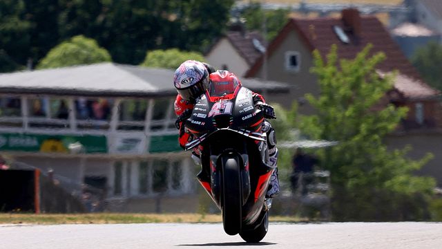 Vittima di un inconveniente inconsueto (gli si è staccata la visiera mentre si preparava ad un giro veloce), il campione in carica e la punta Aprilia Espargarò sembrano gli unici piloti in grado di impensieri i colleghi in sella alle Ducati nella caccia alla pole position del GP di Germania. La candidatura di gran lunga più convincente è quella di Bagnaia che - dopo il secondo - domina anche nel terzo turno di prove libere, abbassando il record del Ring tedesco. Espargarò segue a soli 64 millesimi (lui pure sotto il "vecchio" record), infilandosi tra le due Rosse ufficiali. Terzo tempo per Miller (+0.108) davanti alle Desmosedici targate Pramac di Zarco e Martin, staccati di 194 e 204 millesimi dalla vetta. Distacchi contenuti, senza dimenticare che il Sachsenring è un circuito-salotto da 3671 metri.