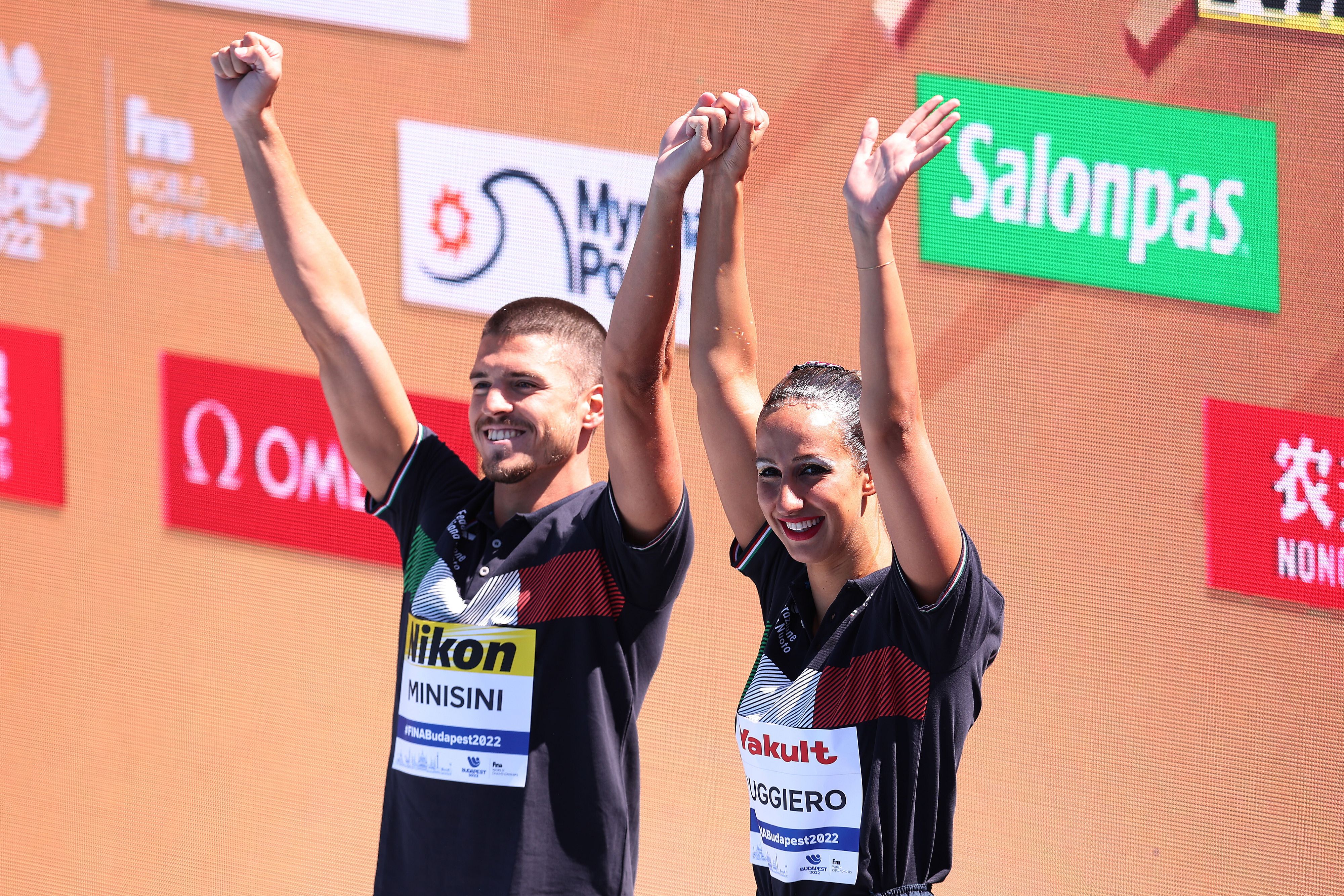 Il nuoto artistico parla ancora azzurro: l'Italia, infatti, conquista il quinto oro e la decima medaglia ai Mondiali di Budapest e ringrazia Giorgio Minissini e Lucrezia Ruggiero, che dopo la vittoria nel duo misto tecnico trionfano anche nel duo misto libero, servendo un bis storico per la spedizione azzurra. Ultimi a scendere in vasca sulle note di Beggin' nella versione dei Maneskin, la 22enne e il 26enne reggono senza problemi la pressione, mostrano grande intesa e sintonia e vincono con il punteggio complessivo di 90.9667, così suddiviso: 27.2000 per l'esecuzione, 36.6667 per l'impressione artistica e 27.1000 per la difficoltà. Prestazione che non lascia possibilità di vittoria al Giappone, con Tomoka e Yotaro Sato che chiudono a 89.7333 e si prendono l'argento. Il bronzo, invece, va alla Cina, con la coppia composta da Haoyu Shi e Yiyao Zhang che totalizza 88.4000 punti.