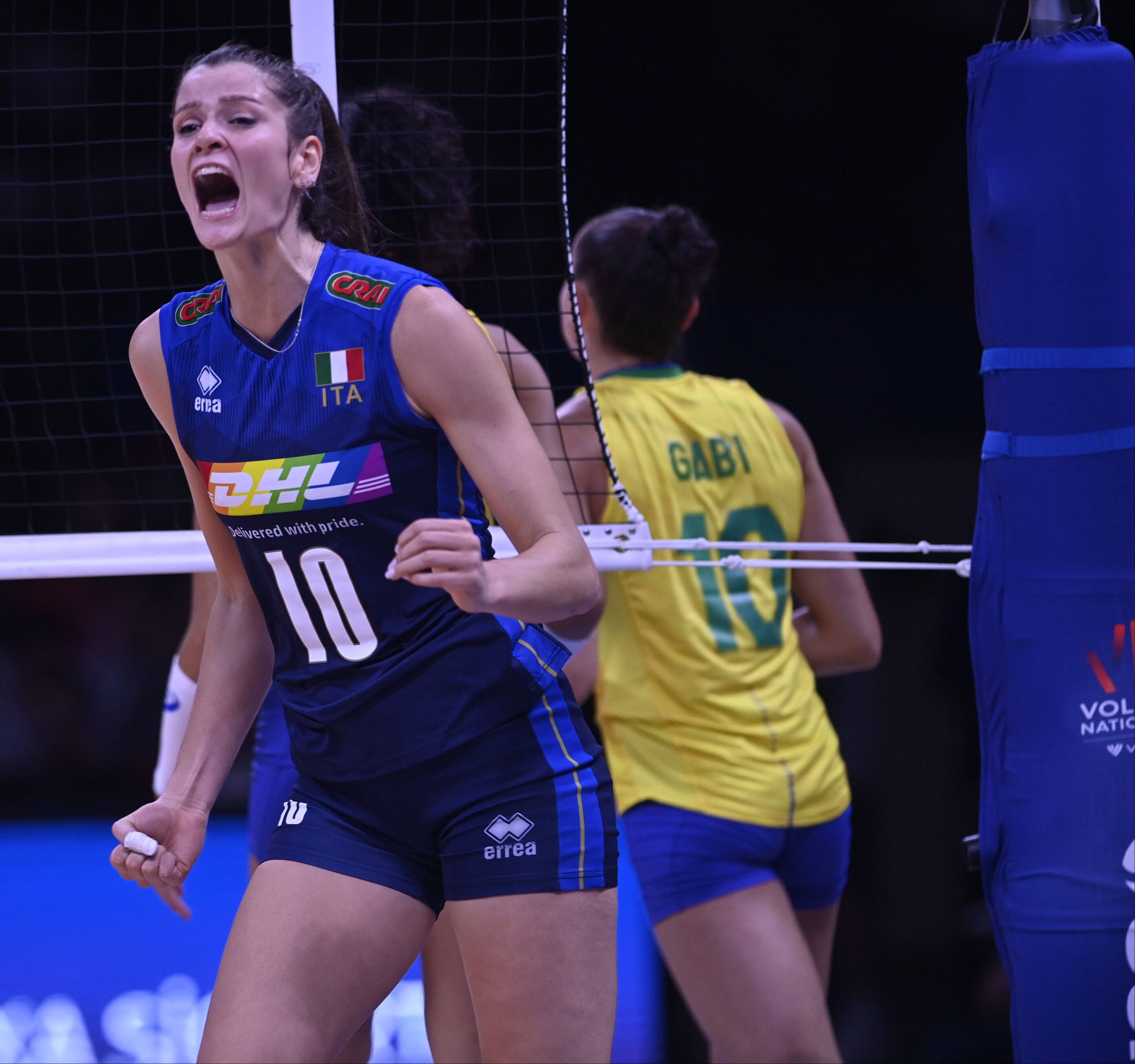 Nell’ultimo set dell’atto conclusivo nella capitale della Turchia, altra fuga italiana in avanti: Danesi, Chirichella e una scatenatissima Bosetti firmano il 20-16. Mai dare, però, per vinte le brasiliane, le quali risalgono sul 21 pari. A questo punto ci pensa Paola Egonu a regalare la Nations League all’Italia: muro su Ana Cristina, potente diagonale e mani fuori, per il 24-22. Match point: muro magistrale di Chirichella su Gabi e azzurre che infrangono finalmente un tabù. Alla fine lo score dirà: 21 punti per Paola Egonu (con 3 muri), 11 Bosetti, 9 Chirichella e Danesi, 8 Pietrini, 1 Malinov.
