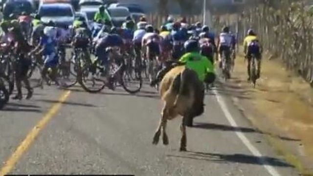 Attimi di panico durante il "Tour de La Paz", in Bolivia. Una mucca "impazzita" ha provocato l'interruzione della corsa ciclistica costringendo gli organizzatori a fermare la gara e a intervenire per evitare che la situazione sfuggisse di mano. Dopo essersi piazzato al centro della carreggiata, l'animale si è scagliato contro gli atleti in bicicletta e contro i mezzi al seguito della gara obbligando i presenti ad allontanarsi dal luogo e a tornare indietro.