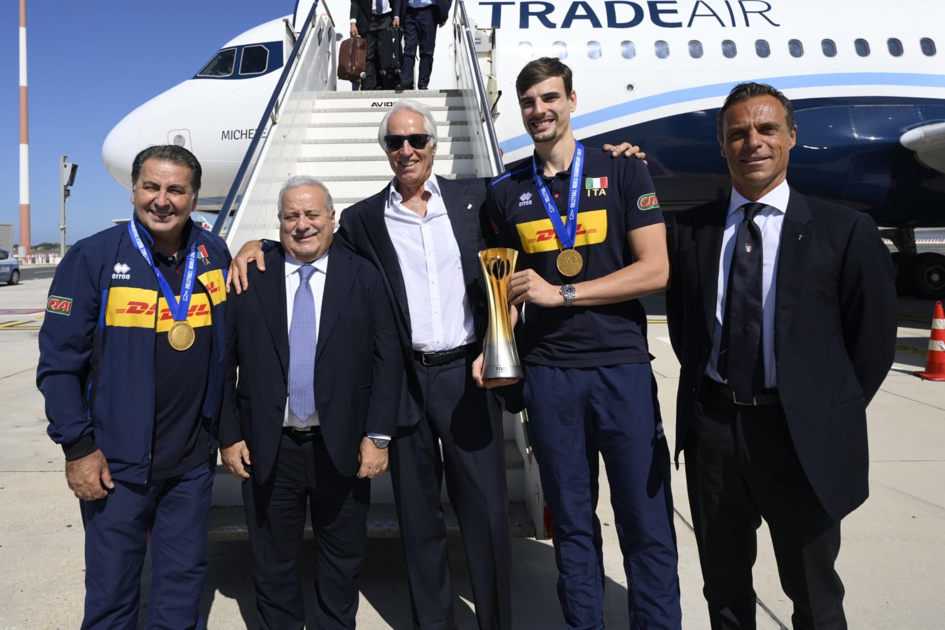 "Siamo la nazionale dei tempi moderni, nessuno ha vinto quattro Mondiali come noi, questo ci deve far ricordare la storia della pallavolo". Lo ha detto il presidente del Coni Giovanni Malagò rivolgendosi al presidente della Repubblica Sergio Mattarella. "Una squadra incredibile, 24 anni di età media, nata da una formidabile intuizione del presidente Manfredi dopo una mezza delusione nell'avventura a Tokyo 2020 dove si era andati con aspettative diverse. Intuizione che ritengo sia stata decisiva, cioè mettere alla guida di questa squadra un uomo la cui stima e considerazione tecnica e umana non ha confini. Fefé De Giorgi, al suo quarto mondiale vinto", ha aggiunto.
