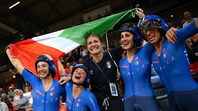 Sorride l'Italia, che ottiene tre medaglie nella seconda giornata dei Mondiali di ciclismo su pista. L'apoteosi è dell'inseguimento a squadre femminile: Balsamo, Guazzini, Fidanza e Consonni sconfiggono nettamente la Gran Bretagna e conquistano il secondo oro azzurro. Argento per Rachele Barbieri (Elimination Race, vince Kopecky) e per l'inseguimento maschile: non riesce la rimonta a Ganna e compagni, sconfitti dai britannici.