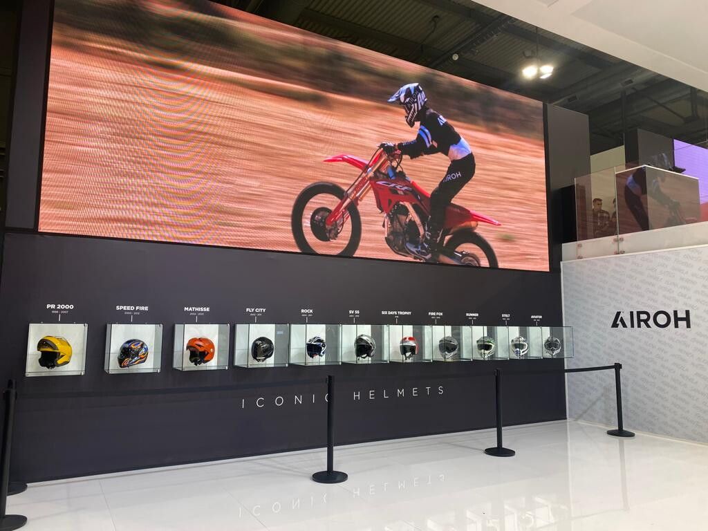 Nella bacheca dei 25 anni di caschi, AIROH esporrà ad EICMA, per il comparto on road, il PR 2000, il casco che ha segnato l'inizio del successo di AIROH alla fine degli anni '90, e che presentava alcune caratteristiche assolutamente innovative per il periodo: apribile, estremamente versatile e ideale per tutte le stagioni. Troverà spazio anche lo SPEED FIRE, sul mercato fino al 2012, casco integrale che ha saputo anticipare i trend di mercato. Al suo fianco anche ROCK, in commercio dal 2004 al 2011, un urban jet la cui versatilità permetteva di affrontare la giungla urbana con maggiore sicurezza. E ancora l'SV 55 che ha determinato il successo di AIROH nel comparto strada, i cui pezzi di ricambio, ma anche il prodotto stesso, sono ancora richiesti, nonostante non sia più in produzione dal 2011. A conclusione del comparto, sarà esposto anche CITY ONE, in commercio fino al 2019, simbolo della mobilità urbana per AIROH.