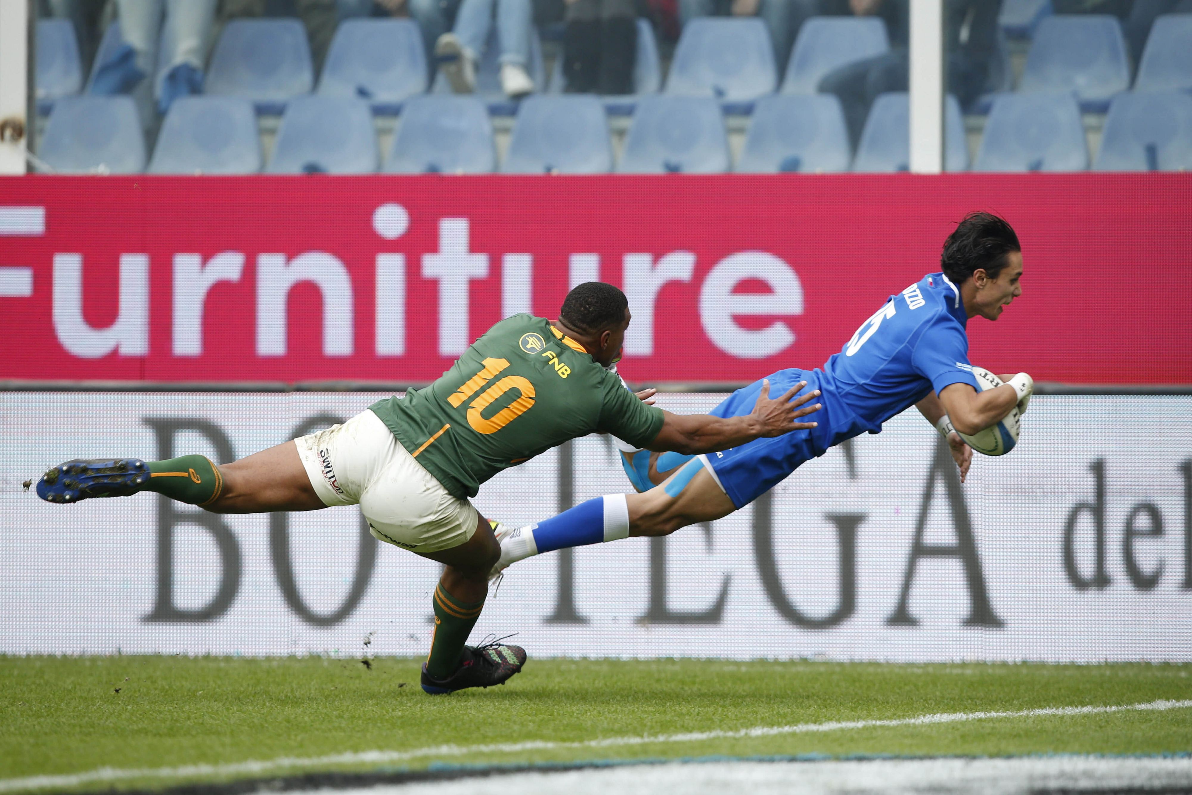 Niente impresa stavolta per l'Italia, che contro il Sudafrica a Genova incassa una pesantissima sconfitta: finisce 63-21 per gli Springboks. Un match indirizzato soprattutto nella ripresa, visto che grazie alla meta di Capuozzo e ai tre calci di Allan gli Azzurri restano a contatto con gli avversari nonostante le mete di Arendse e Kolbe: all'intervallo del Ferraris, è infatti 18-13 in favore del Sudafrica. Nella ripresa, però, dopo un'altra trasformazione di Allan, gli ospiti si scatenano e ancora con Arendse e Kolbe, oltre che con Smith e Marx, trovano quattro mete consecutive, ipotecando il match. Cannone realizza la seconda meta per l'Italia, ma è solo una magra consolazione: nel finale, la formazione di Crowley cede e incassa altre tre mete da Kitshoff, Willemse e ancora Arendse, con le tre trasformazioni di Libbok che valgono il 63-21 finale. Il Sudafrica dimentica così i ko con Irlanda (16-19) e Francia (26-30), mentre l'Italrugby perde dopo i successi con Samoa e Australia.