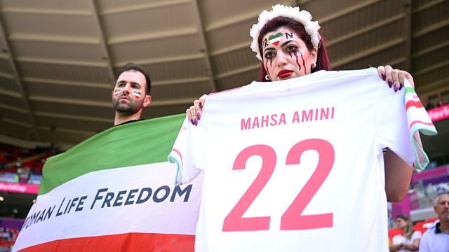 La protesta delle donne iraniane arriva anche ai Mondiali di calcio in corso in Qatar. Sugli spalti dello stadio Ahmad Bin Ali dove si è giocata Iran-Galles è stata immortalata una tifosa persiana con le lacrime nere dipinte in volto che ha mostrato una maglia dell'Iran con la scritta "Mahsa Amini 22", per ricordare la ragazza arrestata perché non portava il velo in modo 'appropriato' e morta tre giorni dopo in ospedale a causa delle percosse degli agenti. La foto ha fatto rapidamente il giro del web. La maglia è stata rimossa dopo l'intervento della sicurezza.
