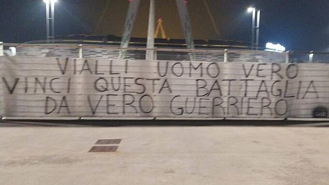 Sulle inferriate dell'Allianz Stadium, che domani ospiterà la prima amichevole casalinga della Juventus dopo i Mondiali, e martedì 27 l'assemblea degli azionisti per l'approvazione dell'ultimo, tribolatissimo bilancio, è stato appeso mercoledì sera un grande striscione, su tre righe, di incoraggiamento a Gianluca Vialli, ricoverato da qualche giorno in una clinica di Londra: "Vialli uomo vero, vinci questa battaglia da vero guerriero". Il messaggio non e' firmato.