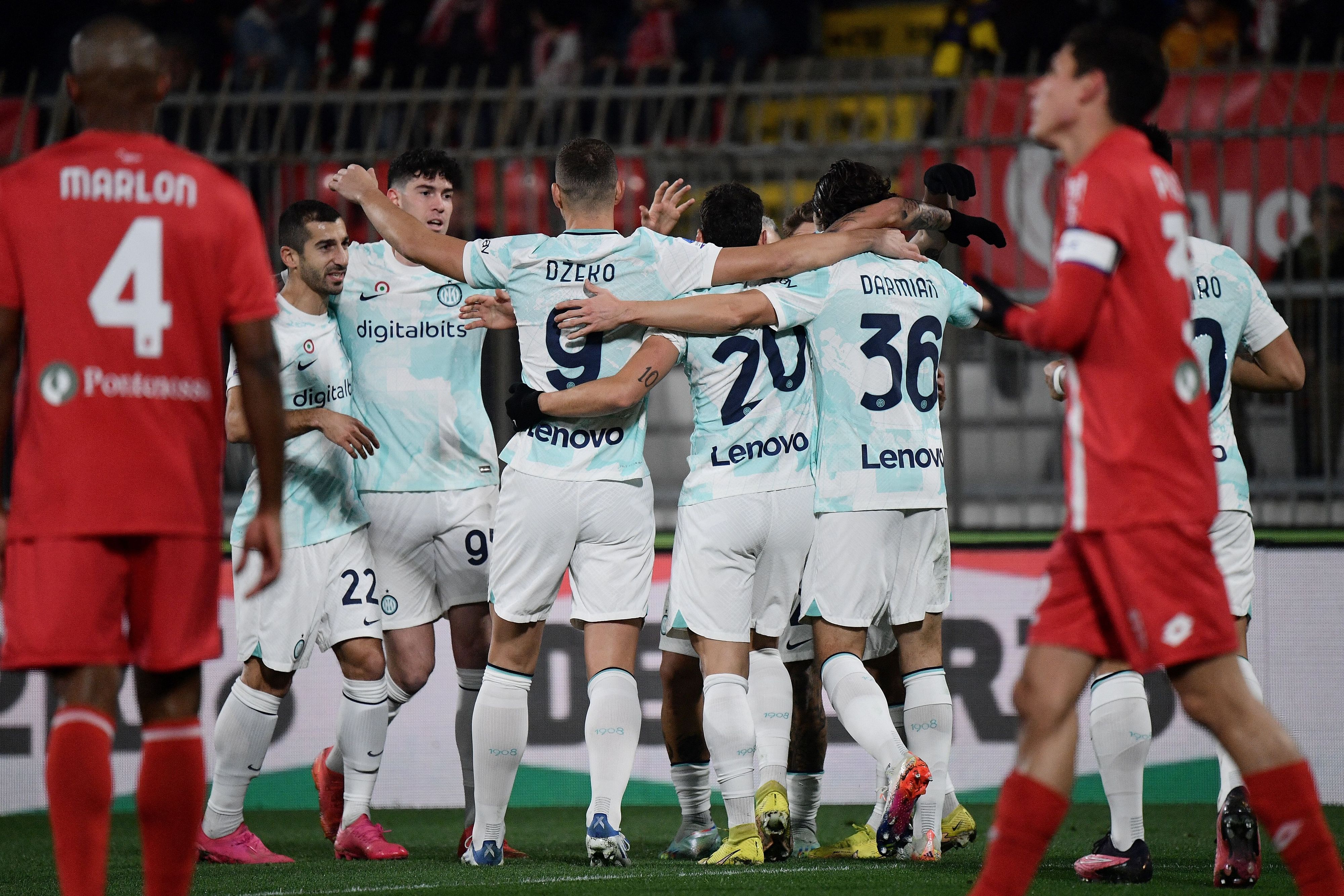 Inter (3-5-2): Onana 5,5; Skriniar 5,5, Acerbi 5,5, Bastoni 6; Darmian 6,5 (35' st Dumfries 5), Barella 6 (18' st Gagliardini 5,5), Calhanoglu 6,5 (10' st Asllani 5,5), Mkhitaryan 6, Dimarco 6 (35' st Gosens 5,5); Lautaro 7, Dzeko 5,5 (10' st Lukaku 5).