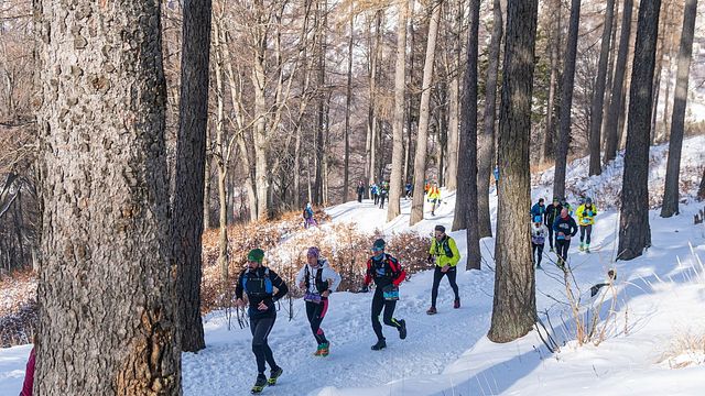 È la mia seconda Snow Run da queste parti. La prima tre anni fa e mooolto diversa, nel suo svolgimento e nel contesto: terreno di gara all'epoca completamente asciutto e… lockdown in agguato. Avrei riattaccato il pettorale solo quasi sette mesi dopo, alla Valzurio Trail di fine estate. Nelle fasi preparatorie della gara sono raggiunto da Vittorio e Gloria, miei compagni di squadra nelle fila della Sportiva Lanzada. Mi fanno presente che alla loro partenza dalla Valtellina le temperature erano addirittura siberiane. La cosa non mi conforta: ho freddo a prescindere e conto - alla rovescia - i minuti che ci separano dal via. Anzi in questo caso dalla partenza controllata: una sorta di chilometro zero, come quello che nelle gare di ciclismo porta il gruppo in una sorta di neutralizzazione fuori dalle città, prima… dell’accensione delle polveri. Così è stato deciso: tutti in convoglio per il primo chilometro (che poi percorreremo in senso inverso nel finale), in modo da lasciare la strada carrozzabile e fermarci all’altezza del gonfiabile della partenza vera, all’ingresso del Parco Valentino per montare i ramponcini che “a tutta” sull’asfalto avremmo forse disintegrato.