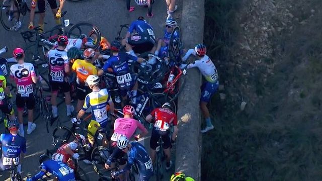 Attimi di terrore durante la seconda tappa Etoile de Besseges, breve corsa a tappe che si disputa in Francia. La seconda tappa odierna è stata interrotta e poi neutralizzata a 25km dal traguardo dopo una maxi caduta che ha visto protagonisti un alto numero di corridori. Terribili le immagini della tv francese che hanno ripreso il 24enne corridore francese Valentin Ferron (TotalEnergies), rimasto sospeso nel vuoto per alcuni interminabili minuti, aggrappato al bordo di un ponte dove è avvenuto l'incidente, prima di essere salvato.