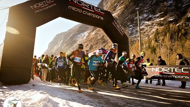 Partenza a freddo, su questo non ci piove (ci mancherebbe): alla fine di gennaio i raggi del sole colpiscono il fondovalle della Val Masino solo per una manciata di ore, quelle centrali del giorno. Anche meno nel caso della laterale Val di Mello, assediata su entrambi i versanti da verticali pareti di granito che hanno fatto da scenario ad una pagina importante della storia dell’alpinismo (e continuano a farlo). Muri di roccia altissimi e in qualche caso aggettanti, che i timidi raggi del sole di gennaio (per restare in tema) faticano a scalare e valicare. Completo frettolosamente (più che altro freddolosamente) le procedure pre-gara gestite dall'efficiente e cortese staff di ASD Team Gigiat del trio Mirko Bertolini, Valentino Speziali e Giacomo Sertori che con questo evento punta ad allargare alla stagione invernale la proposta turistica di una valle che ha davvero tutto per incontrare il favore degli appassionati di montagna ma è per sua stessa conformazione priva di impianti di risalita e piste.