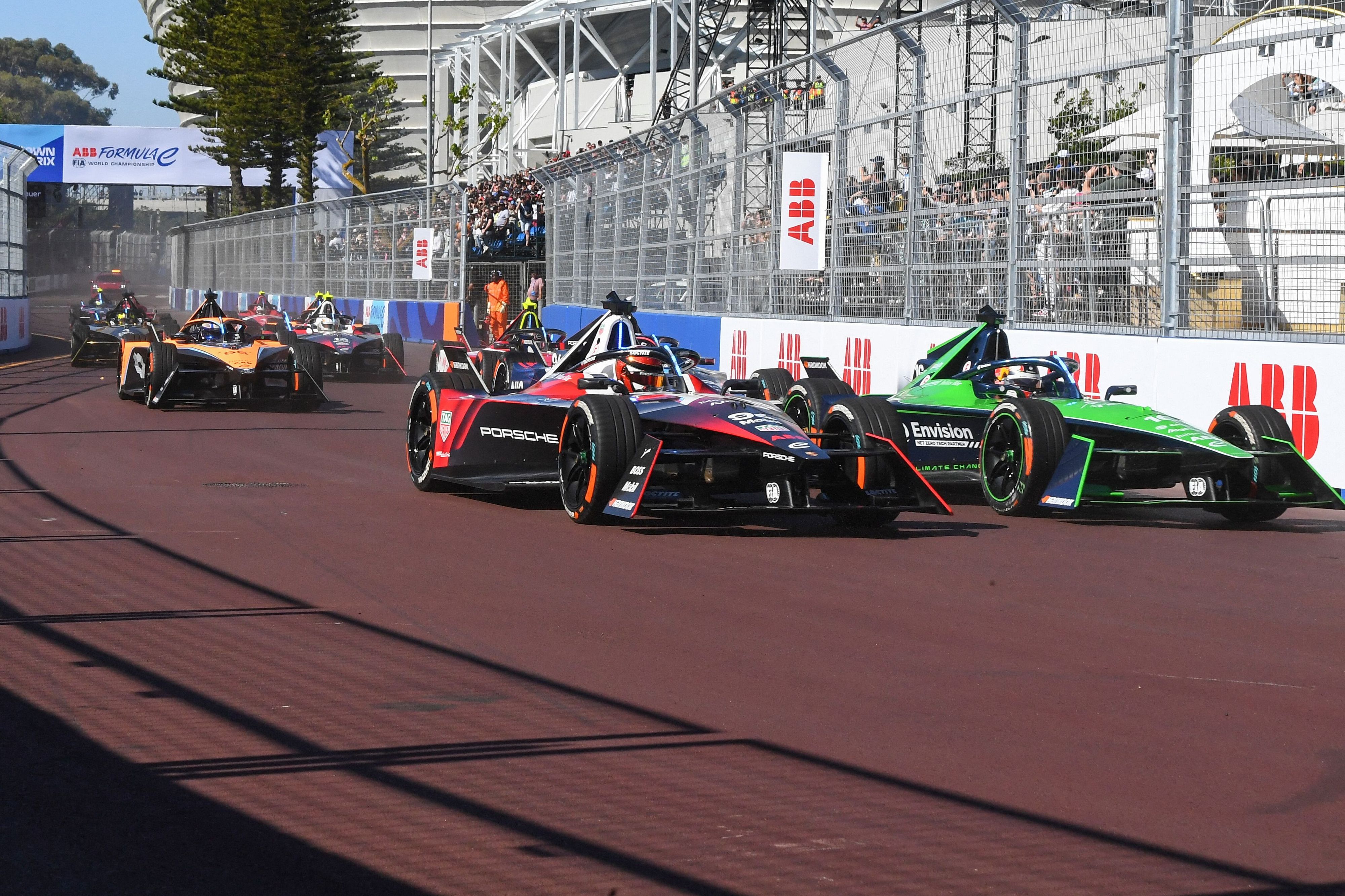 Si schierano al via "solo" diciassette Gen3: mancano le due Mahindra e le due ABT Cupra (powered by Mahindra) per un problema di sicurezza legato alla sospensione posteriore e poi la Jaguar di Sam Bird, troppo danneggiata nell’incidente delle prove ufficiali con la Maserati di Mortara. Al semaforo Fenestraz mantiene inizialmente il comando. Già a metà del primo dei trenta giri, alla staccata in fondo al lungo rettifilo lungo la costa oceanica Wehrlein colpisce a ruote bloccate la Envision di Buemi, provocando la neutralizzazione della gara, con Guenther che riesce a portarsi in prima posizione ai danni di Fenestraz. Buemi riesce a ripartire ed a reinserirsi nel gruppo, la Porsche di Wehrlein invece è bloccata. Una Maserati al comando, l’altra ko: si arresta lungo il percorso anche la Tipo Folgore di Mortara. Weekend da incubo per il pilota italo-elevetico, costretto alla resa come lo stesso Wehrlein. Si riparte al giro cinque: Guenther davanti a Fenestraz, Cassidy, Evans e Vergne a chiudere la top five. Inizia la fase di gara caratterizzata dall’attivazione dell’attack mode. Cassidy prende il comando all’undicesimo passaggio mentre finisce in coda a tutti il suo connazionale Evans, penalizzato con un passaggio ai box per overpower. Il leader va in attack mode senza perdere la posizione, mentre Fenestarz approfitta del passaggio largo di Guenther per guadagnare la seconda piazza alle spalle di Cassidy che sul velocissimo “cittadino” di Cape Town sembra trovarsi meglio di chiunque altro. Solo nono a metà gara Jake Dennis, chiamato (senza successo)a massimizzare l’errore del capoclassifica Wehrlein, del quale è il primo inseguitore nella classifica generale. Il pilota inglese di Avalanche Andretti viene infatti penalizzato con un passaggio ai box per irregolarità tecnica e precipita nelle retrovie… Risale invece la corrente Da Costa che è quarto davanti a Vergne, Rast, Ticktum e Vandoorne.