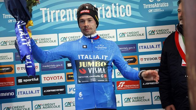 Primoz Roglic vince la penultima tappa della Tirreno-Adriatico, la terza consecutiva, e consolida la sua leadership nella classifica generale, oltre che in quella a punti e in quella degli scalatori. Nei primi chilometri ci sono vari tentativi di attacco, tra cui anche quello di Mathieu Van der Poel, a caccia di una vittoria di tappa, ma una foratura lo costringe al cambio di bicicletta. Scollinata la salita di Santa Maria del Monte (1,8 km con tratto centrale al 12,6% e primo GPM di giornata conquistato da Valentin Ferron), a 5 chilometri dallo sprint intermedio di Macerata c’è una fuga di 11 corridori, tra cui due italiani Bais e De Marchi, il belga Vermeersch e lo statunitense Quin Simmons. Nel gruppo, la Jumbo-Visma controlla tranquillamente la situazione, facendo attenzione alla posizione di Lennard Kamna (Bora-Hansgrohe), secondo a +4" in classifica generale e principale antagonista di Primoz Roglic per la conquista della maglia azzurra.