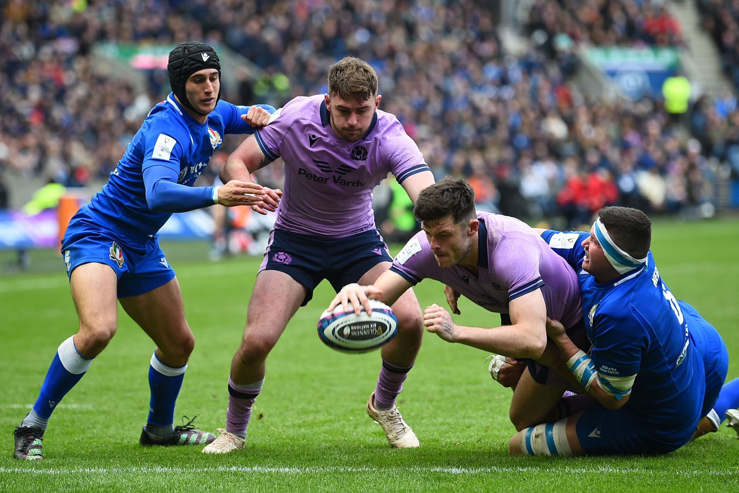 Finisce senza vittorie il Sei Nazioni dell’Italia, che cade anche a Edimburgo contro la Scozia per 26-14. In avvio (4’) gli Azzurri hanno la possibilità di mettere il muso in avanti, ma Allan sbaglia la punizione da buona posizione. Quattro minuti dopo il mediano degli Harlequins realizza i primi tre punti della partita, sempre da calcio piazzato. La prima meta è però appannaggio della Scozia, che al 13’ trova i primi 5 punti della sua partita con van der Merwe, senza la successiva trasformazione. Gli ospiti tornano in vantaggio con altri tre punti di Allan al 16’, anche grazie a una grande difesa che impedisce agli avversari di andare in meta con facilità. Dopo una lunghissima situazione di mischie continue (che portano anche all’ammonizione di Riccioni) la Scozia riesce a sfondare il muro azzurro, con la meta di Kinghorn al 30’, trasformata sempre dal numero 10 scozzese per il 12-6. La squadra di Crowley non riesce ad accorciare, e si rientra negli spogliatoi sul medesimo risultato. L’avvio di ripresa è ancora a favore dei padroni di casa, con la seconda meta di Kinghorn, che con l’annessa trasformazione porta la squadra di Townsend sul 19-6. L’Italia fatica a rientrare in partita, con tanti errori e palle perse che facilitano la partita degli avversari. I giocatori in maglia azzurra riescono ad accorciare con la meta di Allan (senza successiva trasformazione) al 63’, e tre minuti dopo vanno anche sul 19-14 con la punizione di Paolo Garbisi. A poco più di dieci minuti dal termine la partita si accende, con tanti cambi di possesso. A pochi minuti dal termine gli Azzurri vanno vicinissimi alla meta della vittoria, ma gli scozzesi riescono a impedirlo e in contropiede arriva la terza meta di Kinghorn (la quarta della partita per la squadra di Townsend), coadiuvata dalla trasformazione. Finisce 26-14, con l’Italia che chiude il torneo all’ultimo posto, a un solo punto.