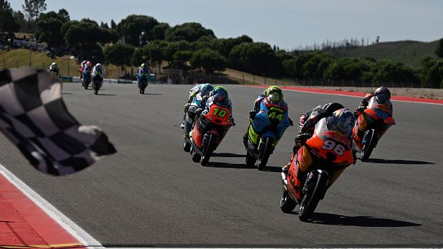 Bagarre piena dal semaforo alla bandiera a scacchi nella gara della Moto3 che ha aperto il programma del GP del Portogallo. La spunta alla fine Daniel Holgado con la KTM Red Bull Tech 3 (prima vittoria per lui) davanti a David Munoz e Diogo Moreira. Paura subito dopo il traguardo quando il vincitore - che ha rallentato in piena traiettoria - è stato centrato in pieno da Joel Kelso (nono) che ha riportato la frattura di una caviglia. Josè Antonio Rueda chiude ai piedi del podio con la KTM Ajo davanti a Jaume Masia, Ayumu Sasaki ed al nostro Stefano Nepa, settimo e migliore degli italiani e autore di una grande impresa dopo l'incidente dello scorso autunno in Malesia.